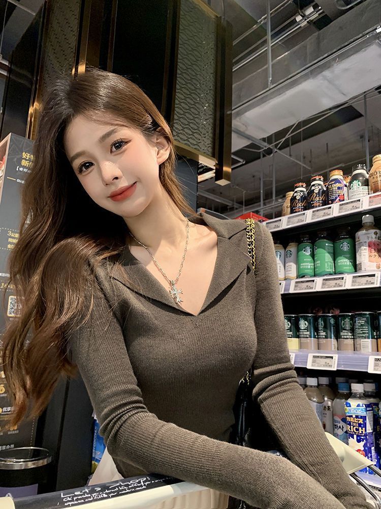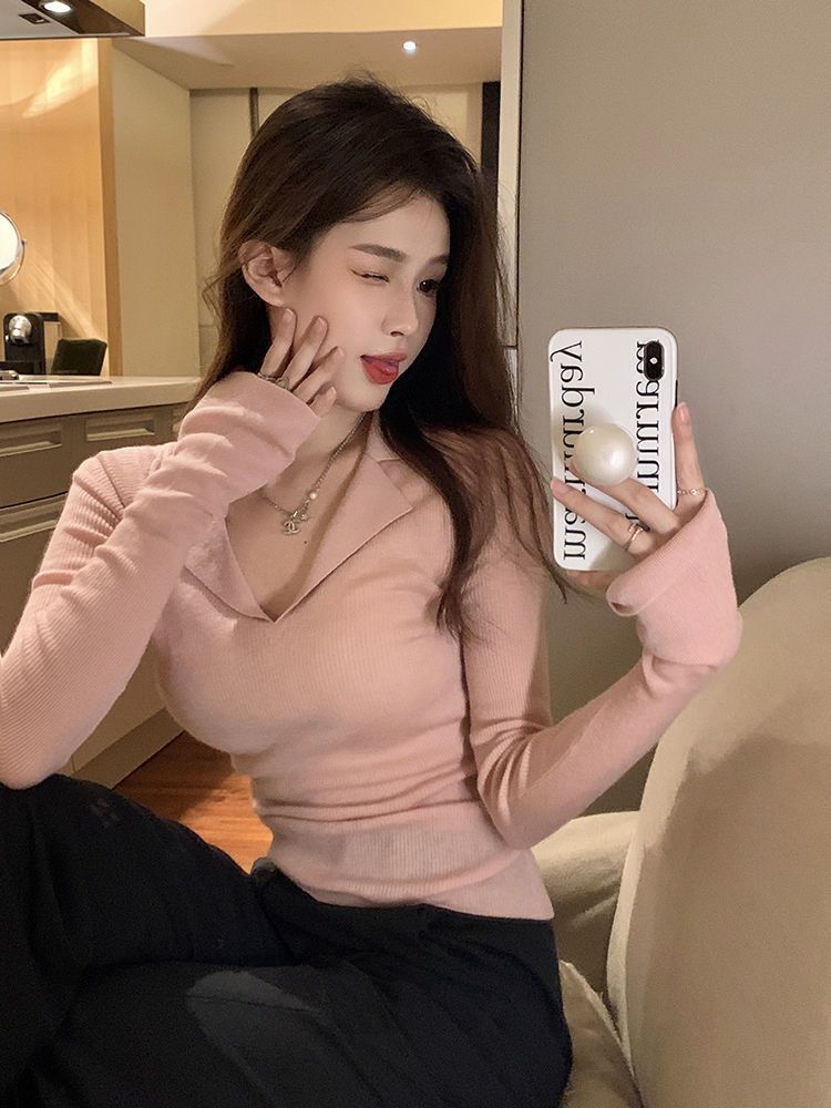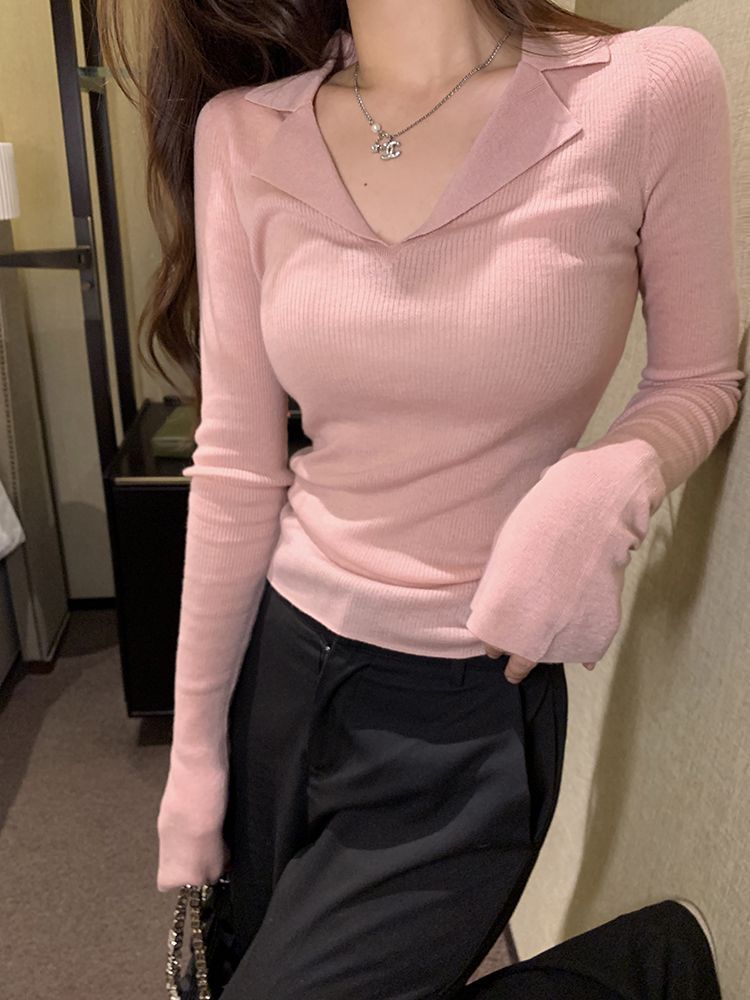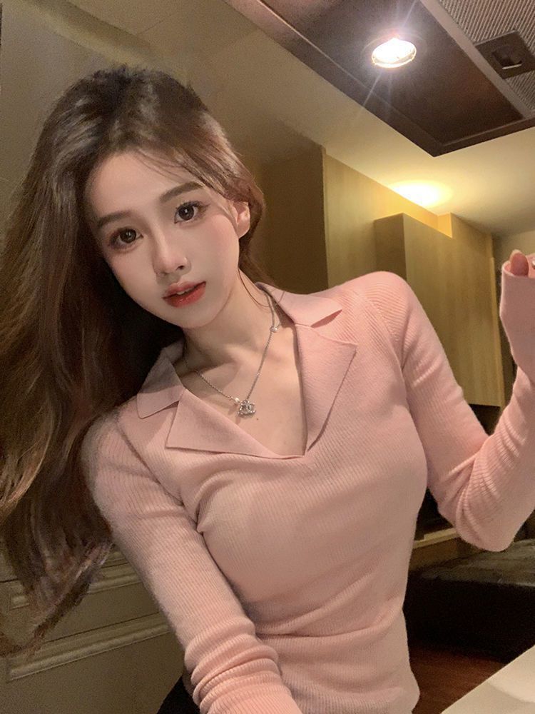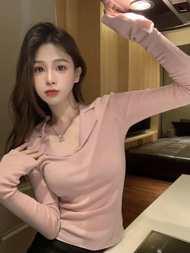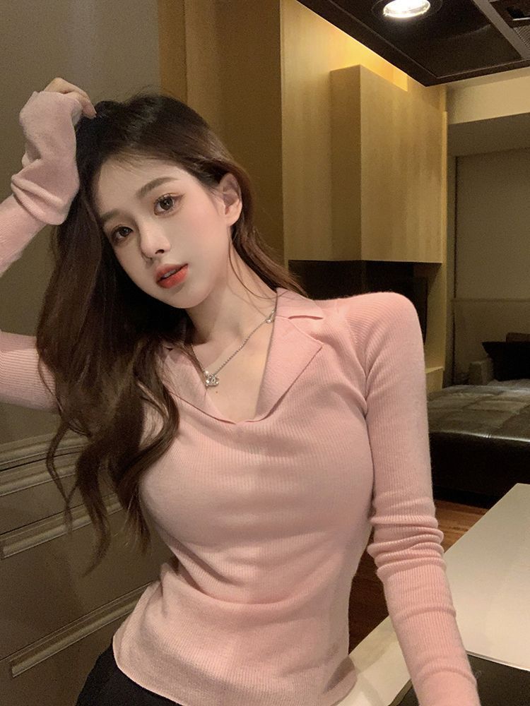 Reines Design gefühl im Stil, dünner Pullover mit Basis, Damen bekleidung im Herbst, neuer Stil, schlankes, lang ärmel iges heißes Mädchen, Top-Trend