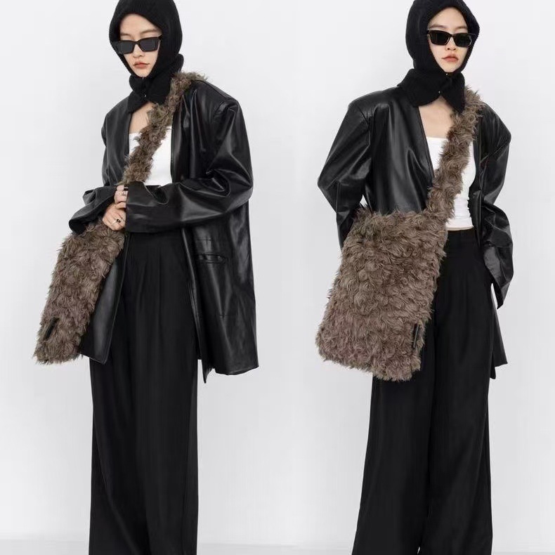 DirtySix Original Herbst und Winter Messiah Girl Plüschige One-Shoulder-Tasche im streunenden Stil Große Retro-Einst acktasche