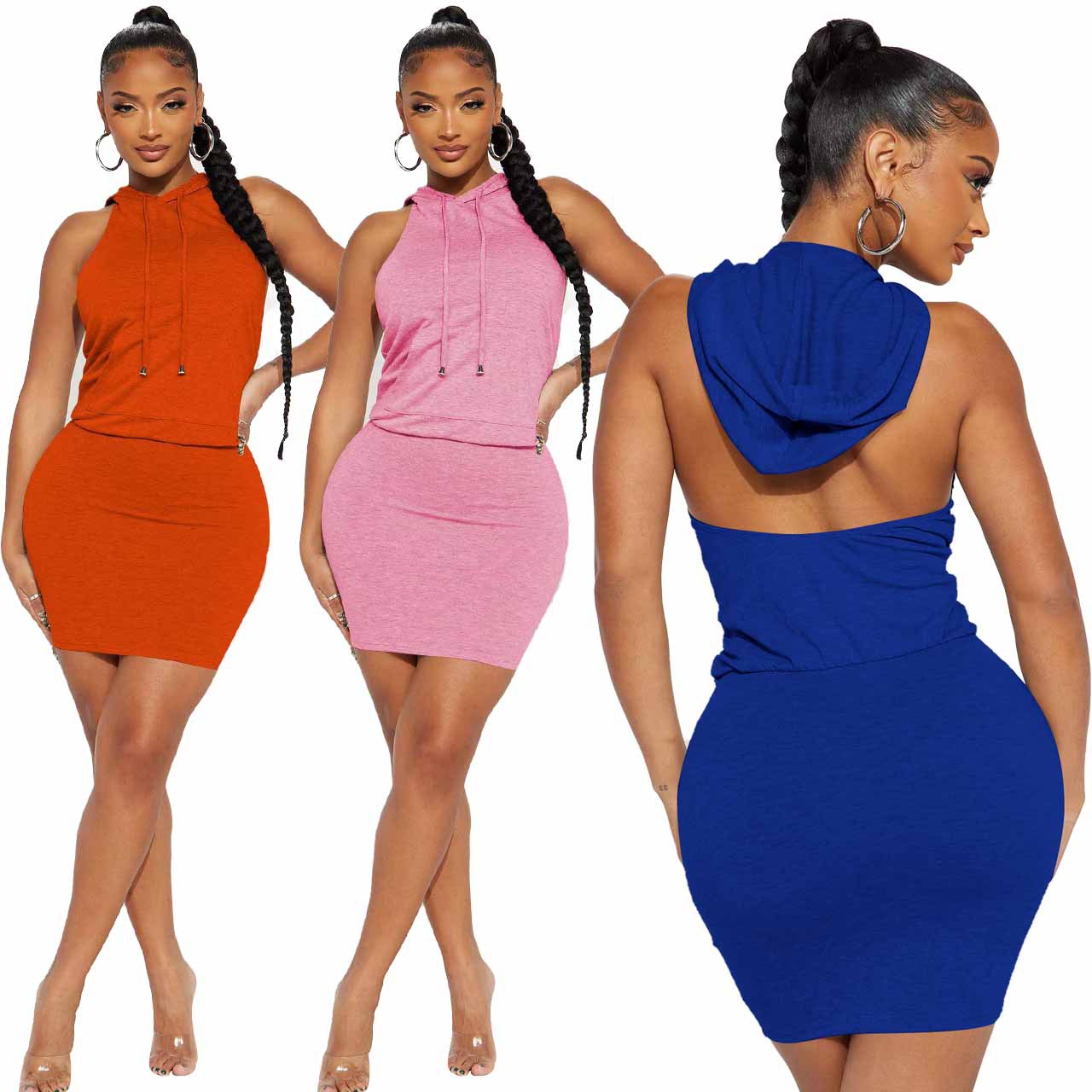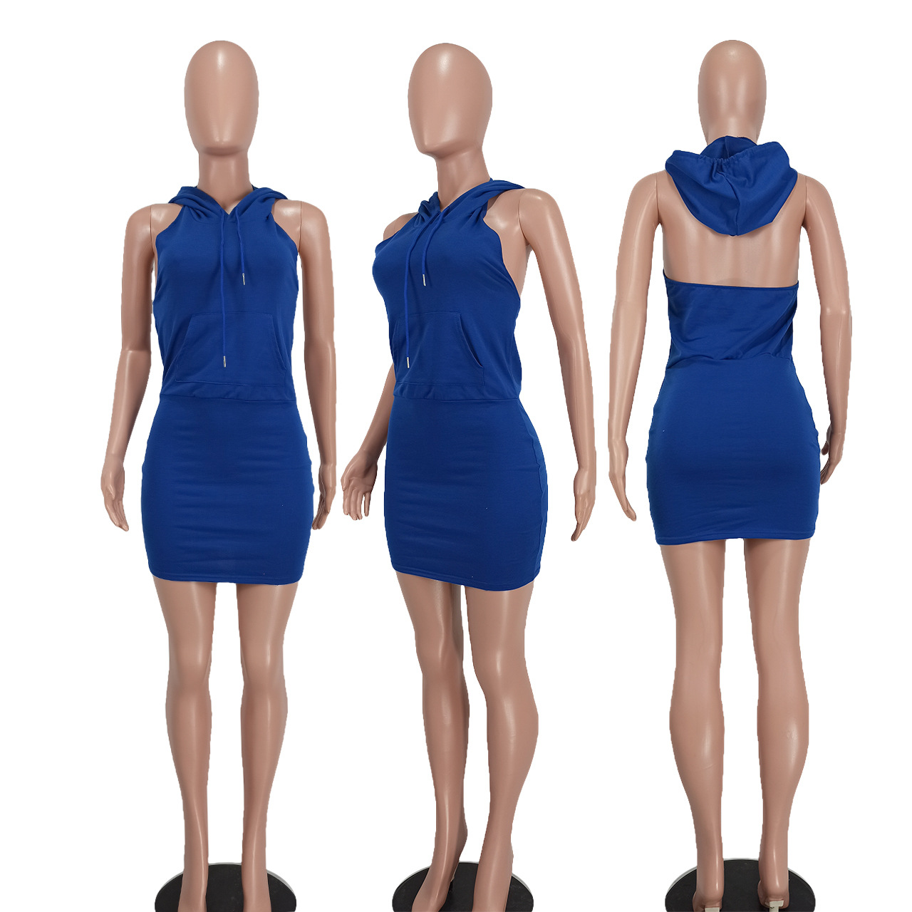 YD8718-H2 sonder angebote, keine Rücker statt ung, kein Wechsel, europäische und amerikanische Damenmode lässig Kapuze, rücken freies Kleid